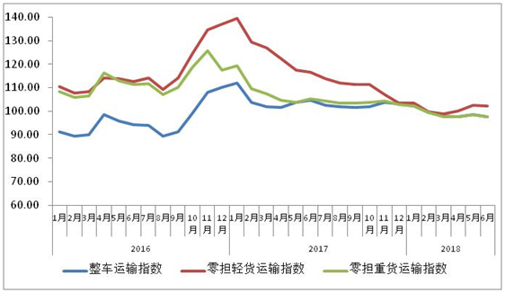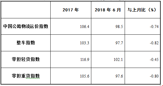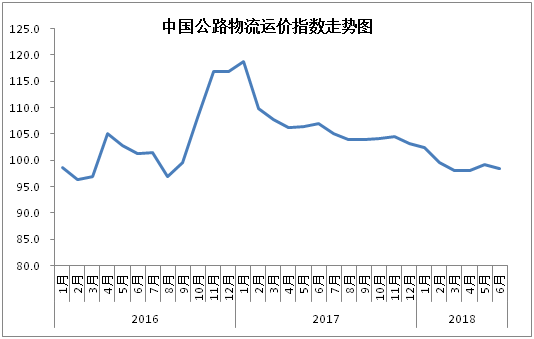 由雷竞技电竞竞猜网 和林安物流集团联合调查的中国公路物流运价指数2018年6月为98.5点,比上月回落0.74%,在连续两个月小幅回升后有所回调。