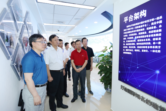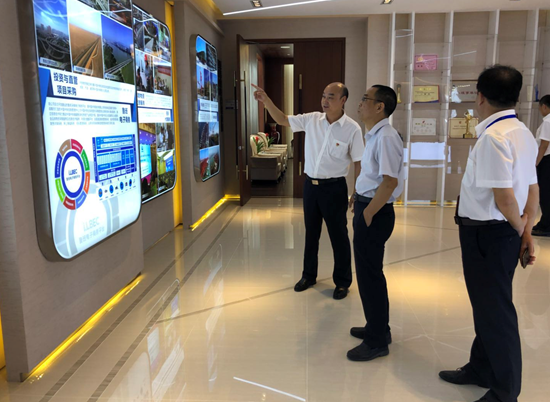 何黎明一行先参观了企业文化长廊、集团财务共享中心、业务协同平台、鲁班公司办公区、以及由鲁班公司建设运营的中国中铁招标中心、中国中铁数据中心,并观看了集团公司宣传片。