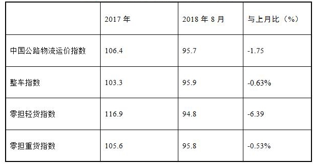 由雷竞技电竞竞猜网 和林安物流集团联合调查的2018年8月中国公路物流运价指数为95.7点,比上月回落1.75%。