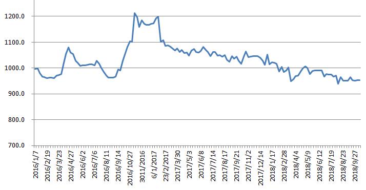 和林安物流集团联合调查的中国公路物流运价指数953.36点,环比回落0.01%。
