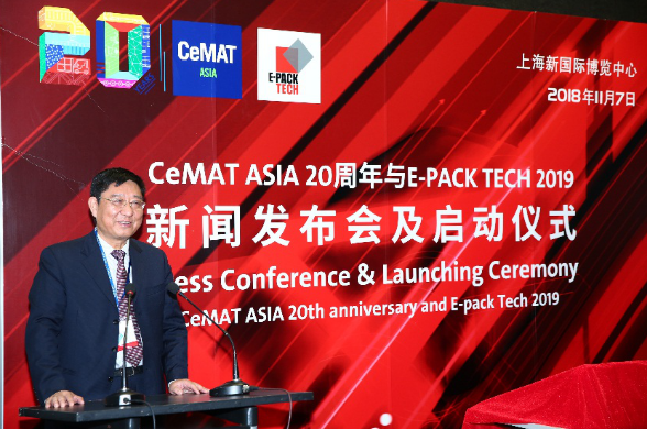副会长蔡进出席展览会。11月7日上午举办了CeMAT ASIA 20周年与E-PACK TECK 2019新闻发布会,会上公布了亚洲物流展20周年宣传标识,并启动了一系列配套推广及庆典活动,蔡进副会长受邀出席并致辞。