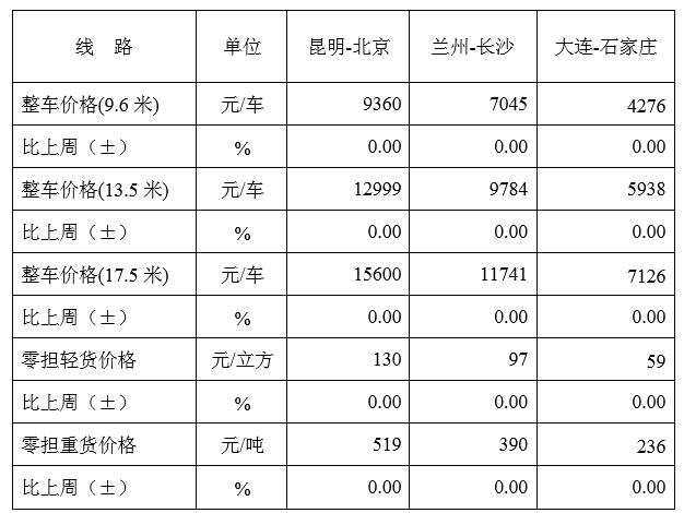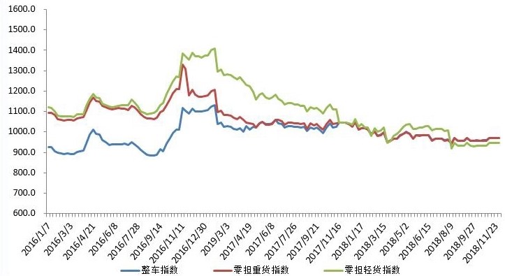 本周整车指数为971.75点,与上周基本持平;零担重货指数为971.61点,与上周基本持平;零担轻货指数为946.50点,与上周基本持平。