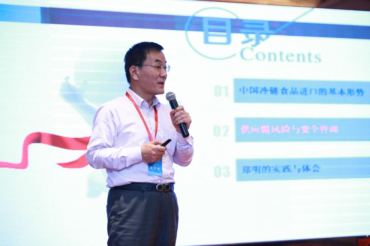 上海郑明现代物流有限公司总裁助理陈锐以《进口冷链食品的供应链风险与安全管理:郑明的实践与体会》为主题与参会嘉宾进行了分享。陈锐提到,中国冷冻食品行业目前的境况十分令人堪忧,市场中的食品安全问题很难得到妥善解决。郑明作为国内知名的冷链物流企业,通过大力投资兴建冷库,目前在全国已经兴建了超过100万平方米的冷库设备,为提升冷链物流基础设施,推动冷冻食品安全做出了巨大贡献。
