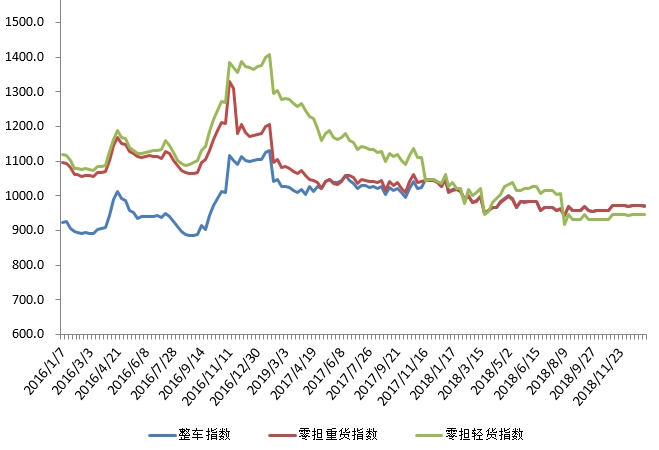 本周整车指数为970.86点,比上周回落0.02%;零担重货指数为970.69点,比上周回落0.01%;零担轻货指数为945.50点,比上周回落0.04%。