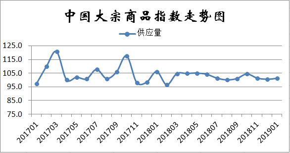 2019年1月份,大宗商品供应指数结束之前的两连跌,反弹至101.2%,显示商品生产利润尚可,企业生产热情仍较为高涨,加之春节临近以及对后市预期良好,企业赶工生产,商品产量整体偏高,供应增速有所加快。各主要商品中,除原煤和汽车供应有所减少外,其余品种均呈现增长态势。本月钢铁和成品油供应量止跌回升,有色金属供应增速加快,铁矿石和化工供应增速有所减缓,原煤和汽车供应量较上月出现不同程度的减少。