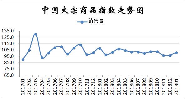 调查、发布的2019年1月份中国大宗商品指数(CBMI)为101.2%,较上月回升2.3个百分点,结束了之前连续两个月下跌的走势。各分项指数中,供应指数、销售指数和库存指数均止跌回升。数据显示,本月国内大宗商品市场供需联动上升,特别是备货需求增加明显,市场显露回暖迹象。进入2月份,全国将沐浴在浓厚的春节气氛之中,终端需求基本停滞,市场基本进入休眠状态,下行压力较大。
