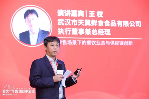 武汉市天翼鲜食食品有限公司执行董事兼总经理王权演讲中表示餐饮必须根据消费群体进行供应链创新整合,“正餐快餐化,快餐工业化”是必然趋势!