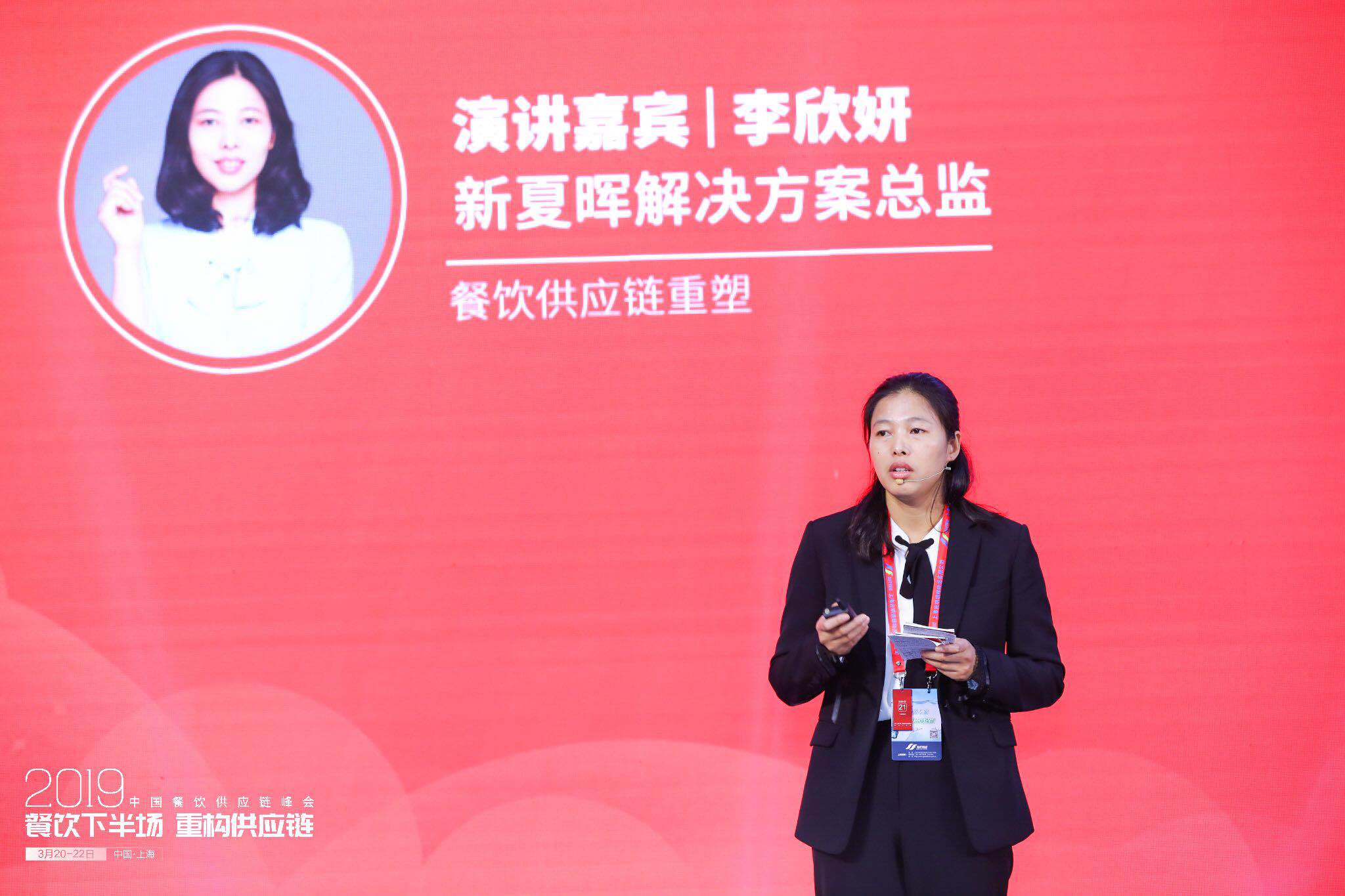 新夏晖解决方案总监李欣妍讲到中央厨房可使产品标准化,为企业提供有效的降本增效的方案,并且借助先进的IT手段,确保食品安全的制度。