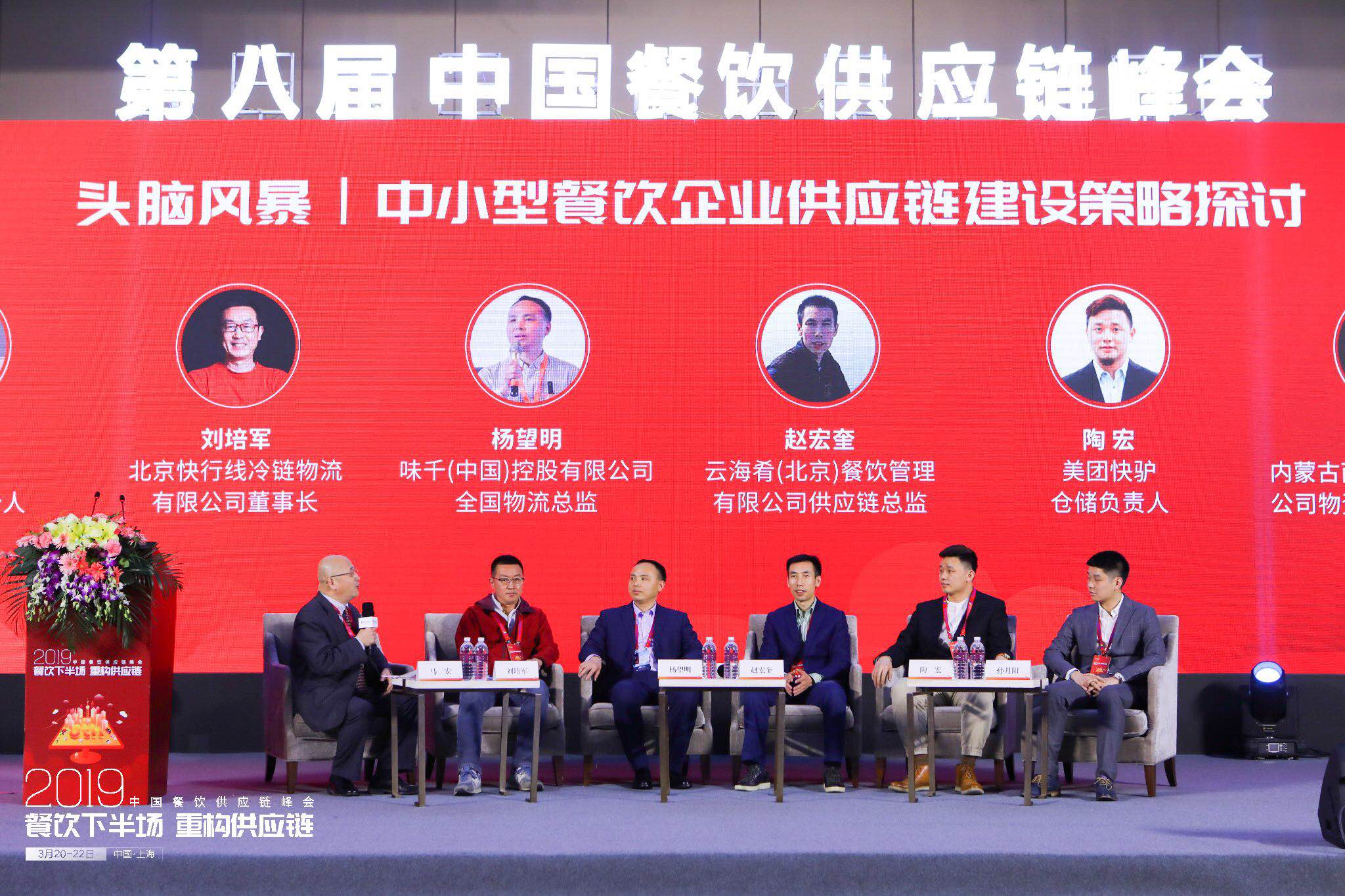 下午,由餐饮供应链峰会由上海精瑞供应链管理有限公司董事长董凤瑞主持,首先开展头脑风暴环节。棋盘资本创始人马宏作为主持嘉宾,北京快行线冷链物流有限公司董事长刘培军,味千(中国)控股有限公司全国物流总监杨望明,云海肴(北京)餐饮管理有限公司供应链总监赵宏奎,美团快驴仓储负责人陶宏,内蒙古西贝餐饮集团有限公司物资部高级总监助理孙月阳作为互动嘉宾以《中小型餐饮企业供应链建设策略》为主题展开探讨。