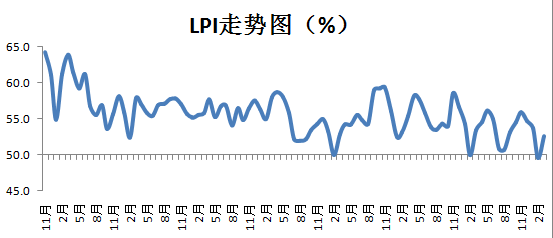 新订单指数上升。3月份,业务总量指数为52.6%,比上月回升3个百分点,东部、中部和西部均保持在50%以上,显示出物流业需求全面向好,稳中趋升态势显现。