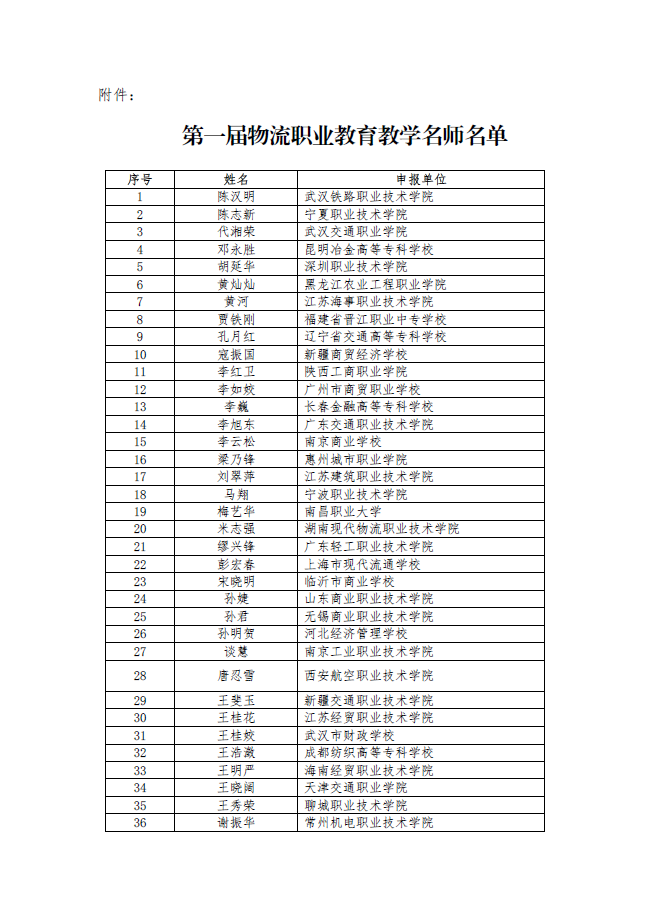 为贯彻习近平新时代中国特色社会主义思想和党的十九大精神,落实党的十九大提出的“加强师德师风建设,培养高素质教师队伍”和《中共中央国务院关于全面深化新时代教师队伍建设改革的意见》精神,全国物流职业教育教学指导委员会于2019年6月-9月,开展了第一届“物流职业教育教学名师”评选工作,共收到成果申报材料286份,其中有效申报材料278份,经学校推荐、专家评审、审核公示,最终确定46名教师为第一届物流职业教育教学名师,现将名单予以公布(名单见附件)。