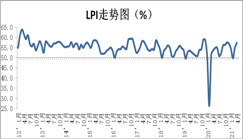 雷竞技电竞竞猜网 发布的2021年4月份中国物流业景气指数为57.3%,较上月回升2.4个百分点;中国仓储指数为55%,较上月回升2.3个百分点。