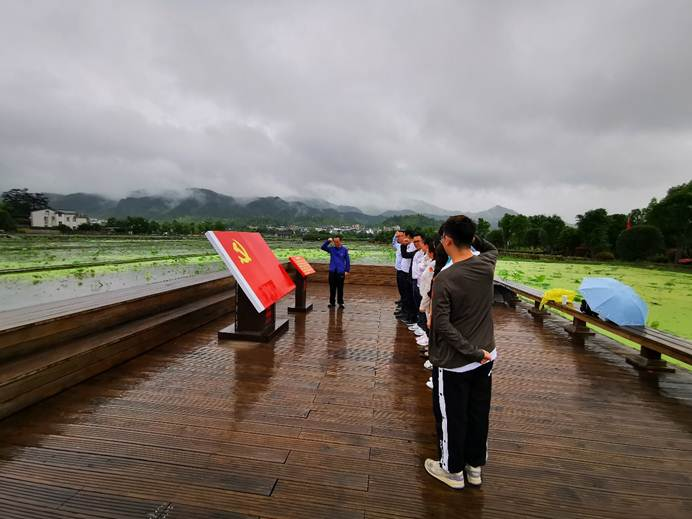 闽北大安革命根据地·缅怀先烈·热血千秋。5月29日,全体党员和入党积极分子一行参观了闽北红色首府大安村。在讲解员的详细解说和带领下,依次参观了大安革命历史陈列馆以及闽北分区苏维埃政府红军礼堂。生动的案例讲解和珍贵的实景文物让每一名同志深刻的体会到了闽北大安革命根据地对于中国解放战争胜利的重要意义,同时也感受到大安人民为闽北以及全国的解放做出了巨大的贡献。在闽北大安革命根据地,全体党员和入党积极分子还一同瞻仰了革命烈士纪念碑,冒着夏雨向烈士纪念碑敬献花篮。