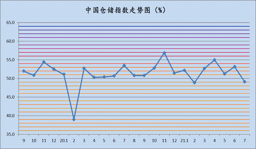中储发展股份有限公司总裁助理王勇认为:7月份仓储指数出现较大幅度回落,时隔四个月再次落入荣枯线以下,表明受天气影响行业运行压力短期有所加大。本月国内中东部多个地区遭遇强降雨及台风天气,运输环节受阻,仓库进出库速度明显减慢,部分受灾严重地区停止出入库作业,仓储业务活动受到一定冲击。与此同时,灾害天气也使得行业经营成本继续提高,主营业务成本指数在上月的高水平基础上再次上升,导致营业利润出现明显下滑。后期来看,业务活动预期指数仍位于高景气区间,表明企业对未来业务恢复增长信心充足,但仍需密切注意天气及疫情变化对仓储业务带来的影响。