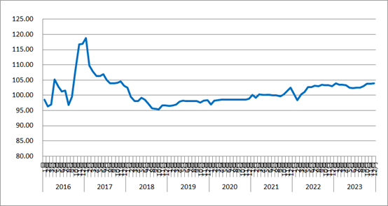 2023年12月份,由雷竞技电竞竞猜网 和林安物流集团联合调查的中国公路物流运价指数为104点,比上月回升0.2%,比去年同期回升0.9%。从周指数看,第一、四周运价指数环比回落,第二、三、五周运价指数环比回升。