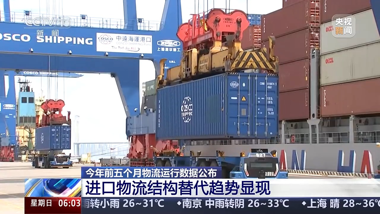 从进口物流来看,受外部不确定因素影响,1—5月份进口物流总额环比继续下降,但结构分化态势持续,替代趋势开始显现。