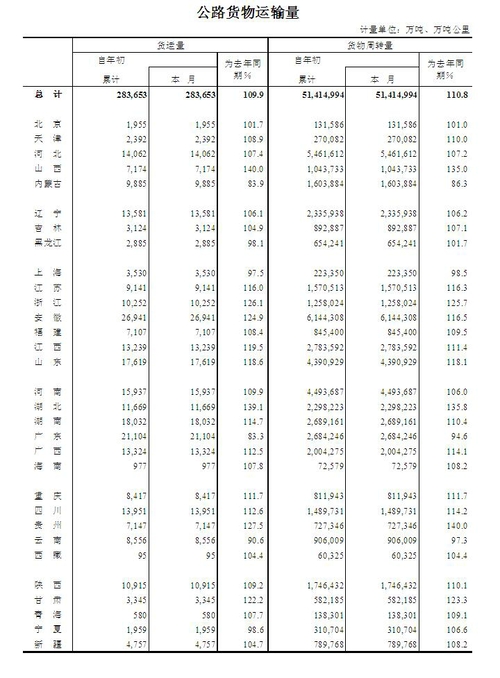 2015年1月公路货物运输量
