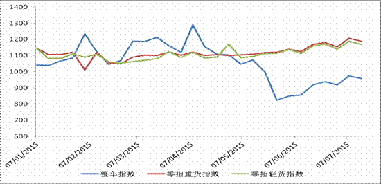 从分车型指数看,各车型指数环比均有小幅回落。整车指数为957.2点,比上周回落1.6%,比年初下降6.7%,但比5月末回升16.2%;零担轻货指数为1169.9点,比上周回落1.5%,比年初回升5.7%,比5月末回升5.0%;零担重货指数为1187.7点,比上周回落1.5%,比年初回升7.0%,比5月末回升6.1%。