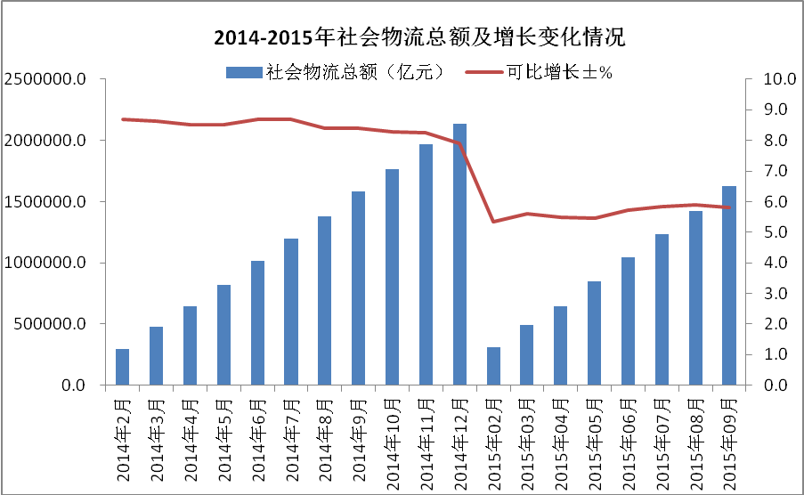 1-9月,全国社会物流总额为162.8万亿元,按可比价格计算,同比增长5.8%,增速比去年同期回落2.6个百分点。从各季度情况,增速比一季度回升0.2个百分点,比上半年回升0.1个百分点,物流运行总体呈现稳中趋升的态势。