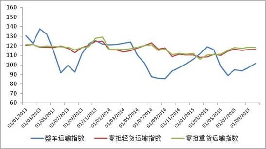 和广东林安物流集团联合调查的中国公路物流运价指数2015年10月为107.8点,比上月回升2.39%,比年初回升1.8%,比去年同期回升7.6%。