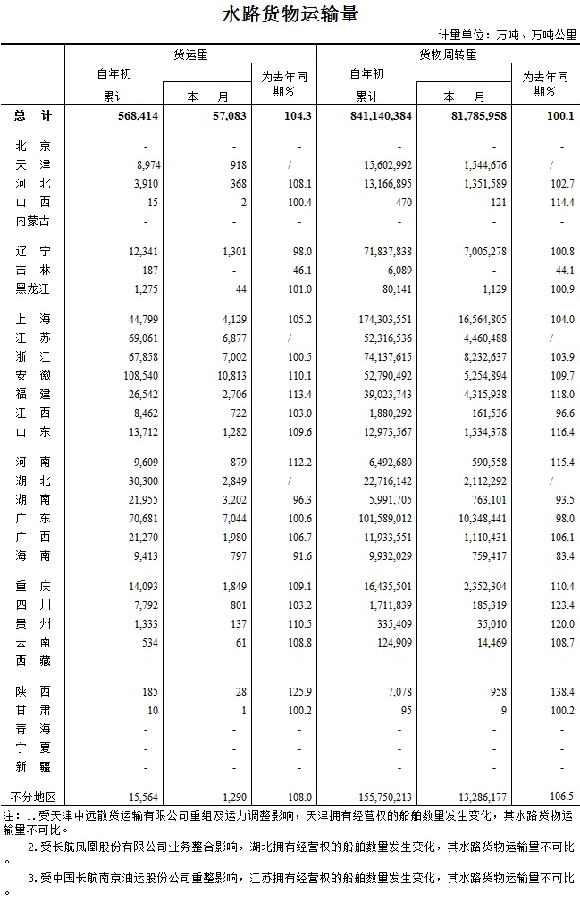 2015年11月水路货物运输量