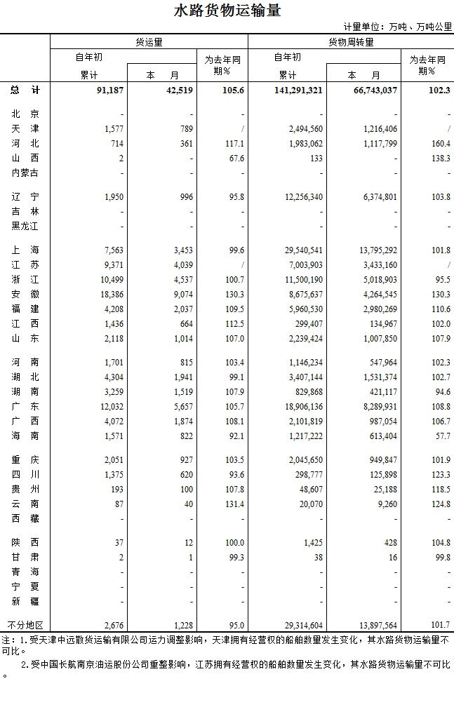 2016年2月水路货物运输量