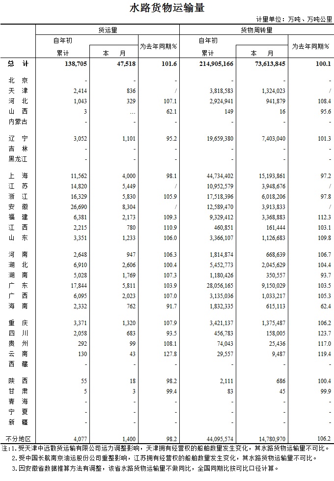 2016年3月水路货物运输量