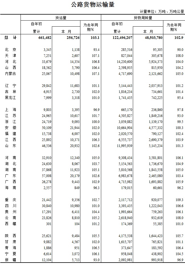 2016年3月公路货物运输量