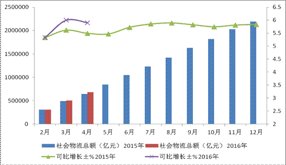 ----电商物流需求平稳增长。1-4月,与民生相关的单位与居民物品物流总额保持较快增长,同比增长46.7%,增速比上年同期提高1.1个百分点;于此同时,电子商务、网上零售等新兴业态保持快速增长,实物商品网上零售额比上年同期增长25.6%,增速比一季度略有回落,但高于社会消费品零售总额增速15.5个百分点,单位与居民物品物流需求增长对物流需求规模的贡献稳步提升。