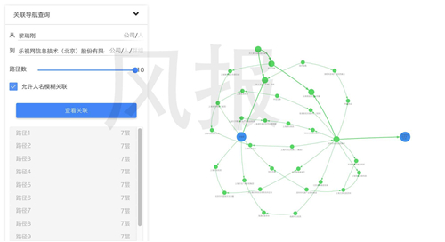 风报创新性的实现了1秒钟内,在数亿实体间,精准找到企业与企业,企业与个人间多维关联的功能。该功能深度挖掘了基于法律关系的多层企业投资及被投资关系和海量重大事件的企业间关系。帮助深入了解企业情况,进行风险排查,实现情报深度挖掘的目标定位。