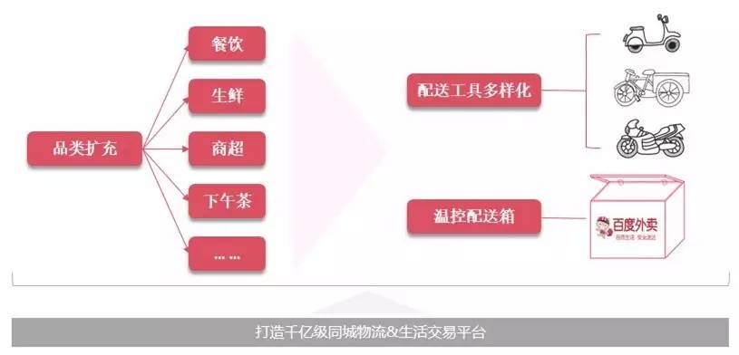 ⑦战略目标与多元化:百度外卖致力于打造千亿级的同城物流和交易的平台,品质生活,安全送达。百度物流是在基于外卖做物流,其实百度外卖从两年前发展到今天,以现在的市场份额和市场规模,要实现我们的战略目标,接下来面临的问题会很艰巨。