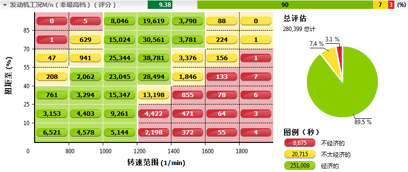 3. 虽然平均速度快,但最高挡行驶时间占比低,经济性不高;
