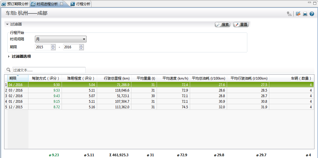 经过培训和驾驶员自身的实践,从2016年3月开始,驾驶员已经能够长时间将车速控制在经济车速区域,几乎占据整个运营里程的一半。而从之前的数据表中,我们看到实际上车辆全程的平均速度并没有产生明显的变化,也就是说,在时效未受影响的前提下,就车速这一指标,车辆以更经济的状态在运行。