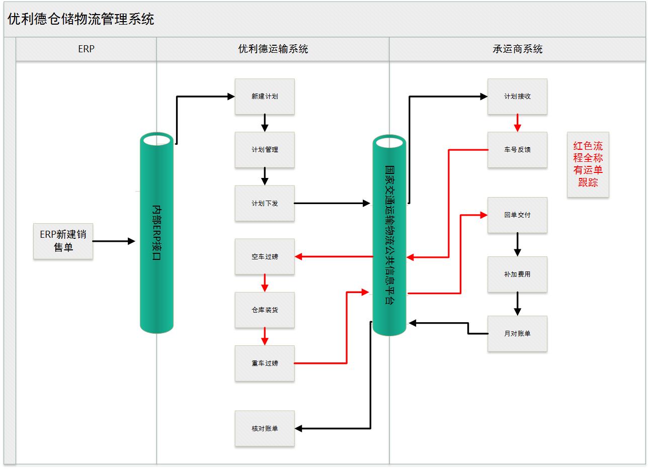 (9)承运商通过手机APP或手工对位置信息进行跟踪,通过物流平台同步更新到优利德仓储物流管理系统生成货物跟踪信息并上报;