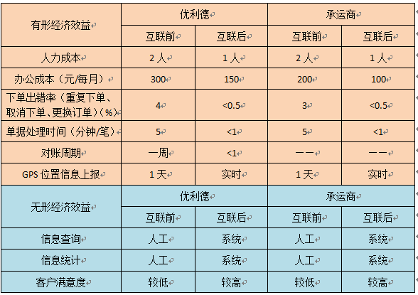 信息系统的使用省去了传统模式下大量的重复信息录入和信息传递的中间环节,信息传递根据业务需求设定。在使用优利德仓储物流管理系统之前,优利德是通过使用电话、QQ、传真的方式进行业务的沟通,这种人为的信息传递错误时有发生,出错率很高。业务员下达发货订单后电话通知承运商,承运商安排好车辆后再以电话或QQ的方式回复给优利德,优利德再登记发货信息,后通过优利德仓储物流管理系统的使用,销售人员在ERP系统录入销售计划后,仓储运输管理系统会自动读取ERP系统中的销售计划,销售人员再通过优利德仓储物流管理系统将计划下发给指定承运商。上游订单通过国家交通运输物流公共信息平台的数据交换平台同步到承运商所使用的系统中并自动生成订单。整个过程中信息传递及时、准确,减少了信息的重复录入,提高了整体的工作效率和实时性。
