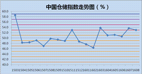 雷竞技电竞竞猜网 与中储发展股份有限公司联合调查的2016年8月中国仓储指数为53.0%,较上月回落0.7个百分点,连续六个月位于扩张区间。各分项指数中,平均库存周转次数指数、业务活动预期指数较上月有所回升,业务量指数、业务利润指数及企业员工指数与上月持平,其余指数均有不同程度的回落。
