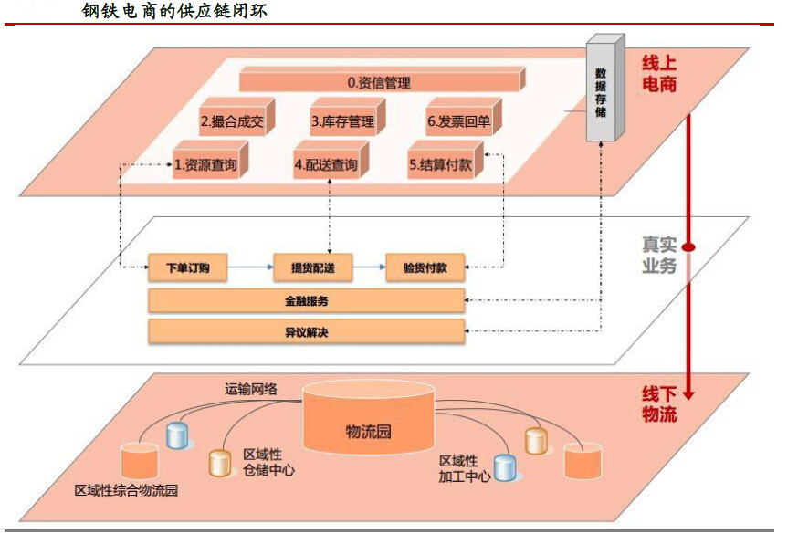 贸易供应链云平台通过云计算与大数据平台实现产品BOM信息的共享与自动匹配推送,整合上下游供应链厂商的内部生产系统,根据下游终端制造企业的实际需求构建从采购订单管理---仓储资源匹配---交货期限管理---车辆运力匹配---门禁管理一卡通的全流程物流管控系统生态,为客户提供钢材原料采购的纵向一体化物流配送服务。同时,为客户预留库存预警端口,一旦客户原料或加工配件库存消耗达到一定的预警值,系统将根据客户设置的筛选条件自动匹配资源,推送采购订单邀约。