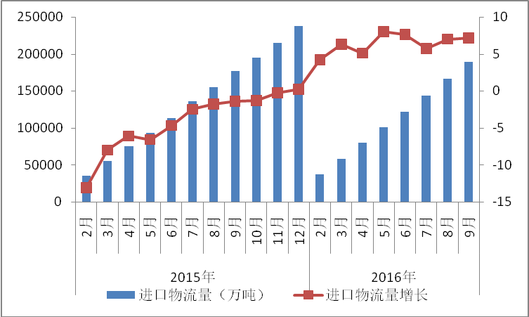 从市场需求看,随着“去产能”“去库存”等任务的实施举措不断落实,产能过剩的局面有望继续改善,煤炭、钢铁等大宗商品价格明显回升,加之基础建设投资需求有望在四季度继续释放,工业经济阶段性筑底迹象明显,预计相关的工业物流需求全年有望保持平稳增长态势;第四季度,随着消费升级的推进及节日消费的带动,与居民消费密切相关的快消品、食品、医药、通信等物流业务仍将保持较快增长。预计全年社会物流总额增长在6.1-6.2%左右。