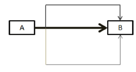 蚁群算法是从模拟自然界中蚂蚁的觅食行为发展而来。蚂蚁在觅食过程中,留下引诱其余蚂蚁跟随的信息素,若有路径距离食物更近,则往返一次所需时间更短,此路径被路经的频率高,更易累积信息素,能吸引更多的蚂蚁。换句话说,累积信息素最多的路线,即最优路线。如下图示,由A到B,一开始蚂蚁有三条路线选择,但因中间线路最近,往返速度最快,能累积的信息素最多,最终所有蚂蚁都将由中间路线通行。