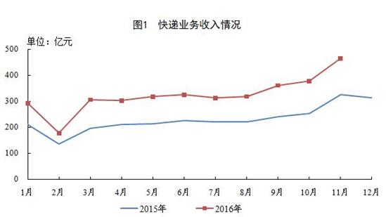 11月份,全行业业务收入完成570.4亿元,同比增长35.7%;业务总量完成847.5亿元,同比增长42%。
