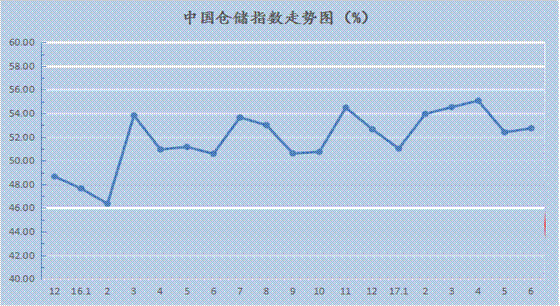 雷竞技电竞竞猜网 与中储发展股份有限公司联合调查的2017年6月中国仓储指数为52.7%,较上月回升0.3个百分点,连续十六个月位于扩张区间。各分项指数中,业务量指数与上月持平,业务利润指数、期末库存指数、企业员工指数较上月有所回升,其余指数均有不同程度的回落。