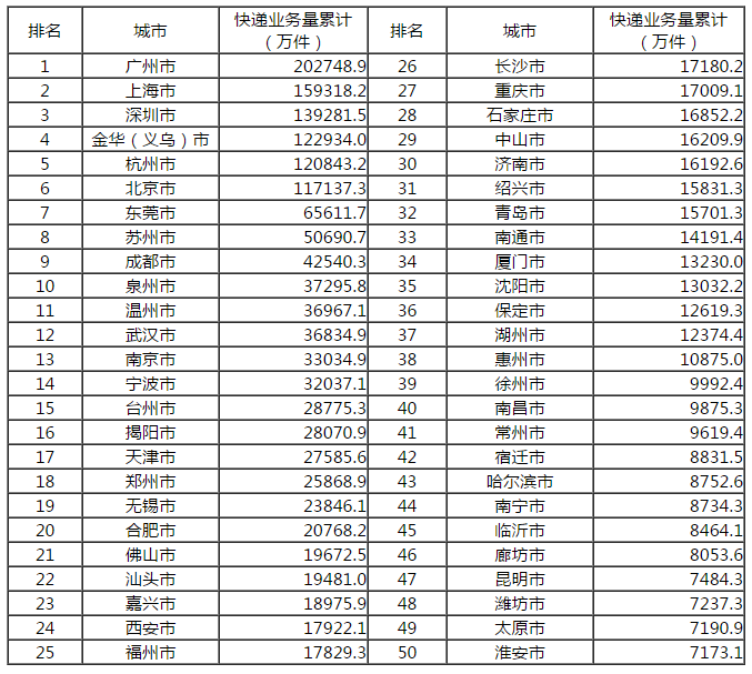 1-7月,同城、异地、国际/港澳台快递业务量分别占全部快递业务量的23.3%、74.6%和2.1%;业务收入分别占全部快递收入的14.4%、51%和10.9%。与去年同期相比,同城快递业务量的比重下降1.1个百分点,异地快递业务量的比重上升1.1个百分点,国际/港澳台业务量的比重基本持平。