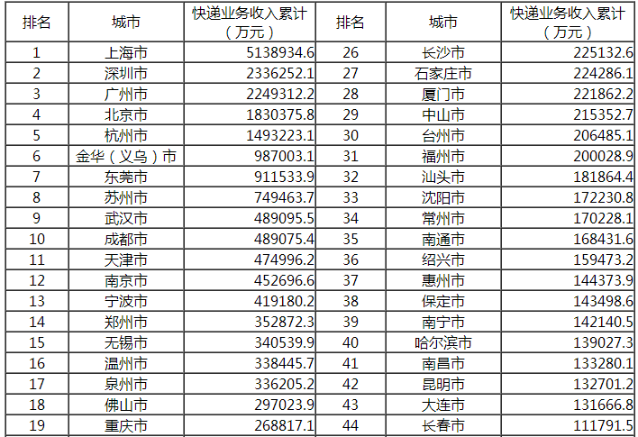 注:邮政行业业务收入中未包括邮政储蓄银行直接营业收入。