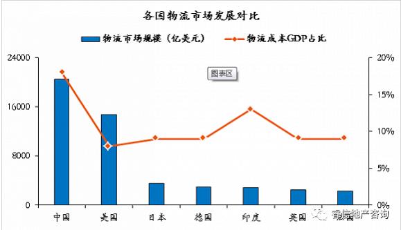 国内物流市场规模早在2012年就超越美国位居世界第一(2015年达到2万亿美元,超过美国1.5万亿美元),但从物流成本及基础设施建设来看,整体物流效率偏低,超过70%的现有物流设施建于1990年前,特别是现代化物流设施不足1亿平米,占比不足20%。