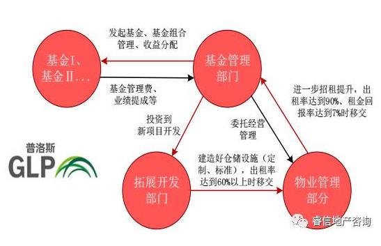 普洛斯打造了由物业开发、物业管理和基金管理形成闭合循环,一方面,通过物业开发本身的杠杆、在加上基金的杠杆,层层放大杠杆,实现有限资金撬动更大的管理资产,另一方面,通过以房地产基金对接物流地产开发的方式,提前兑现物业开发利润,实现重资产业务轻资产化运营,投资回报期由原先 10 年缩短至 2-3 年,加快物流地产开发周转率。