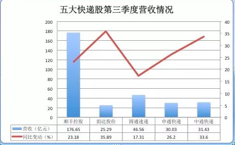至此,以顺丰及“三通一达”为代表的五大上市快递企业均已发布三季度业绩报告。整体而言,这五大快递股在今年第三季度的表现都比较不错,全部都实现了营收与净利润“双增”,且增速均保持在10%以上。