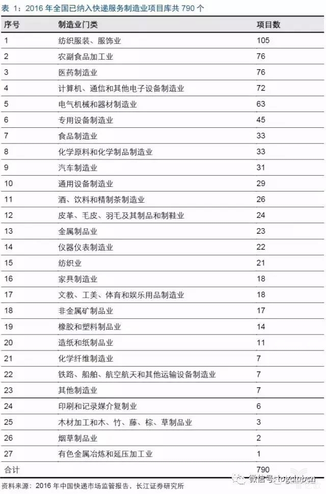 截止2016年底,全国已累计开展制造业联动试点项目322个,已纳入快递服务制造业项目库项目790个,涵盖纺织服装、服饰、农副食品加工、医药制造等27个制造业门类。我们认为,中国制造业转型升级,离不开高效、精准、以综合物流为基础的供应链管理服务,这有望成为快递行业下一个需求增长点。