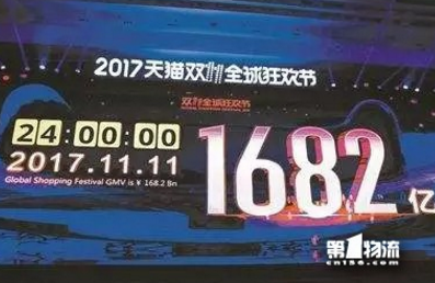 2017年天猫“双11”再破记录,GMV突破1682亿元,物流订单突破8.12亿件。