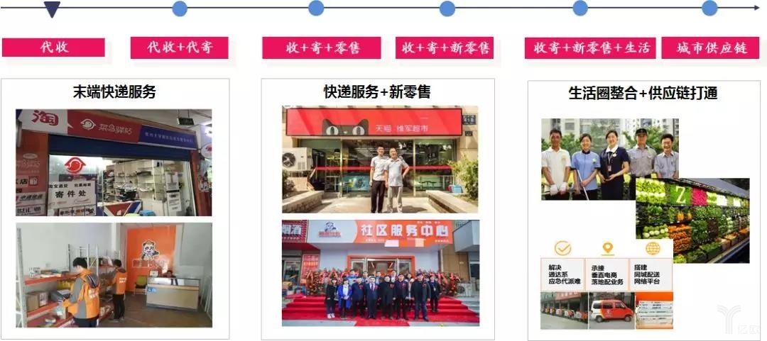 我们都知道商流带动物流,譬如淘宝电商件带动了三通一达,京东B2C带起了仓配模式的京东物流,美团网、饿了么外卖引领了以美团配送、蜂鸟为代表的O2O众包物流,末端派送的压力又使快递柜、代收网点应运而生,如今在新零售的风口下,末端代收网点与新零售正在悄然结合,并将迭代衍生出新的商业模式。