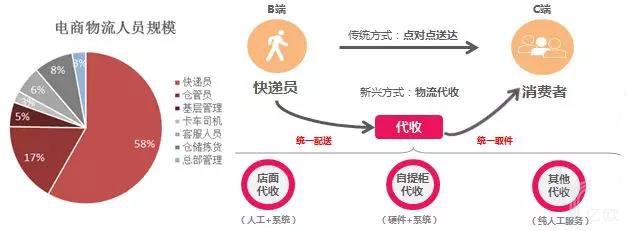 而快递从业人员中,快递员人数就超过了50%,也就是说最近几年已出现的快递员供给不足现象,在未来很长的一段时间将更加严重。在这样的趋势下,目前的快递柜和代收网点等物流末端形式将长期存在并继续发挥巨大作用,以应对持续的末端派送压力。